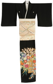 嫁入り支度に用意してもらった思い出の黒留袖です。地色が変色していたので、染め直してもらったら、新品によみがえりました。娘に持たせることにします。