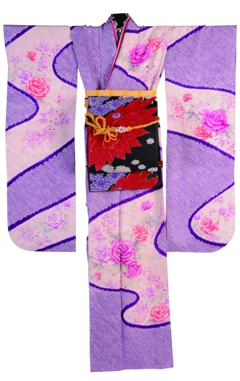 成人式用にお選びいただいた小物と違った印象になるようにコーディネートしてみました。黒地の帯や半衿でカッコイイ雰囲気にまとめました。