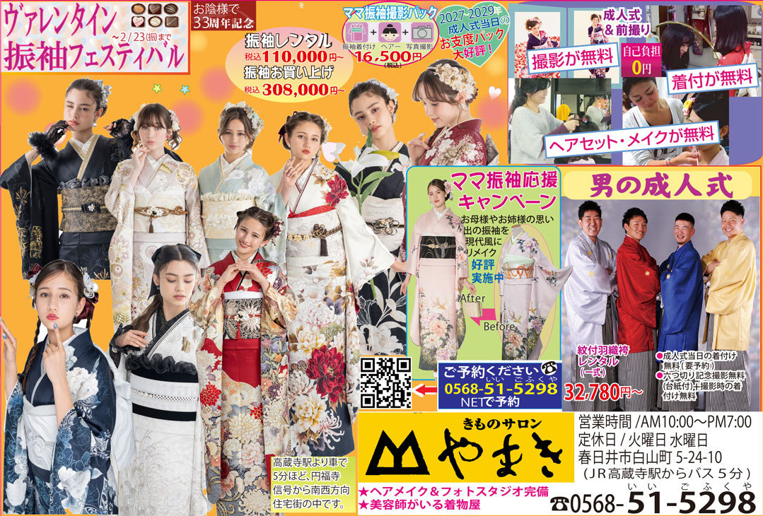 『成人式当日&前撮り時ヘア&着付け無料』