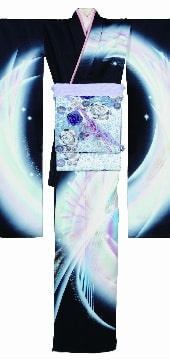 とても印象的な振袖なので、雰囲気を大切に優しい色合いにしました。帯のシルバーが良く映えます。