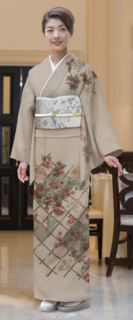 【6点セットレンタル】正絹訪問着 7薄いアイボリー色 亜麻色